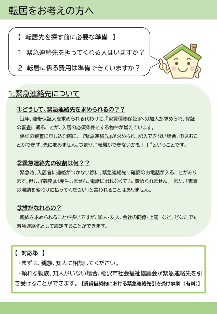 ①『住み慣れた住居で安定した生活を続けるための支援』と②『家探しが必要な世帯に対する入居支援』に