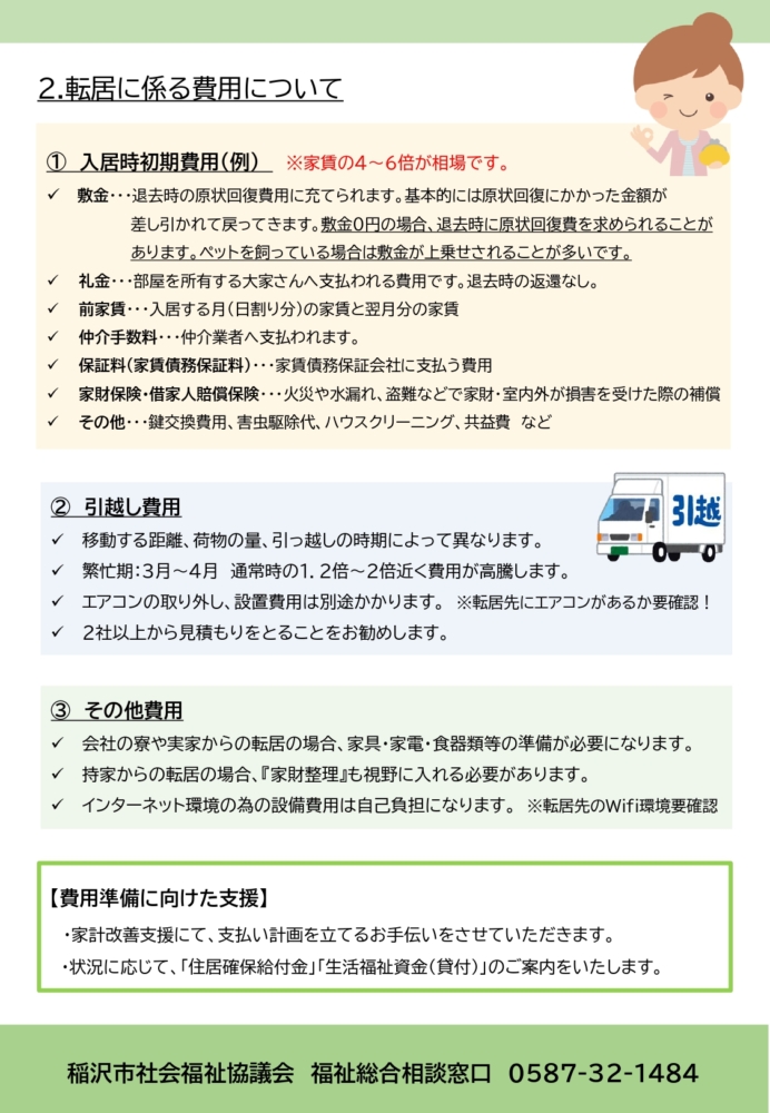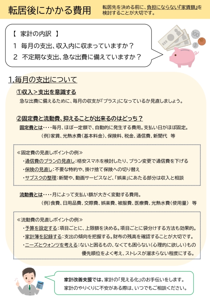 転居をする前に必要な準備、転居後に係る費用について簡単にまとめました。