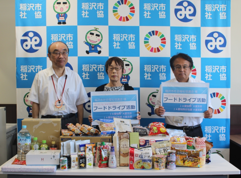 令和7年10月17日、JA愛知西 大里支店/JA愛知西女性部大里支部様からJA愛知西農協大里支店まつりでのフードドライブ活動で集まった食料品などを本会へお届けいただきました。お寄せいただきました食品は、生活困窮者支援で活用させていただきます。
